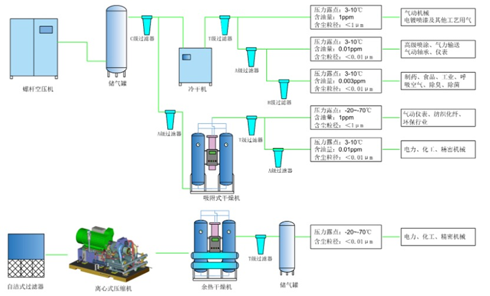 1. 多種干燥凈化方式,可根據(jù)用戶要求配置;