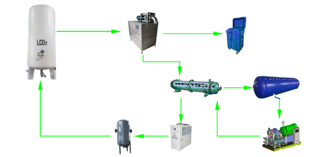 我公司將生產(chǎn)干冰時的二氧化碳?xì)怏w加以回收利用,通過液化、分離等技術(shù)處理,得到食品用液體二氧化碳產(chǎn)品,每生產(chǎn)1噸干冰可回收1.2t 液體二氧化碳,減少干冰制作過程中的液體二氧化碳單耗,大大降低干冰生產(chǎn)成本。